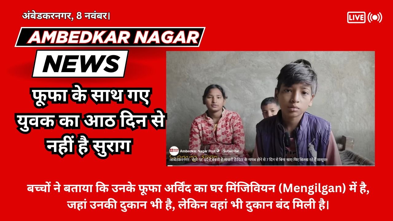 Ambedkar Nagar News: फूफा के साथ गए युवक का आठ दिन से नहीं है सुराग — परिवार के मासूम बच्चे रो-रोकर कर रहे गुहार